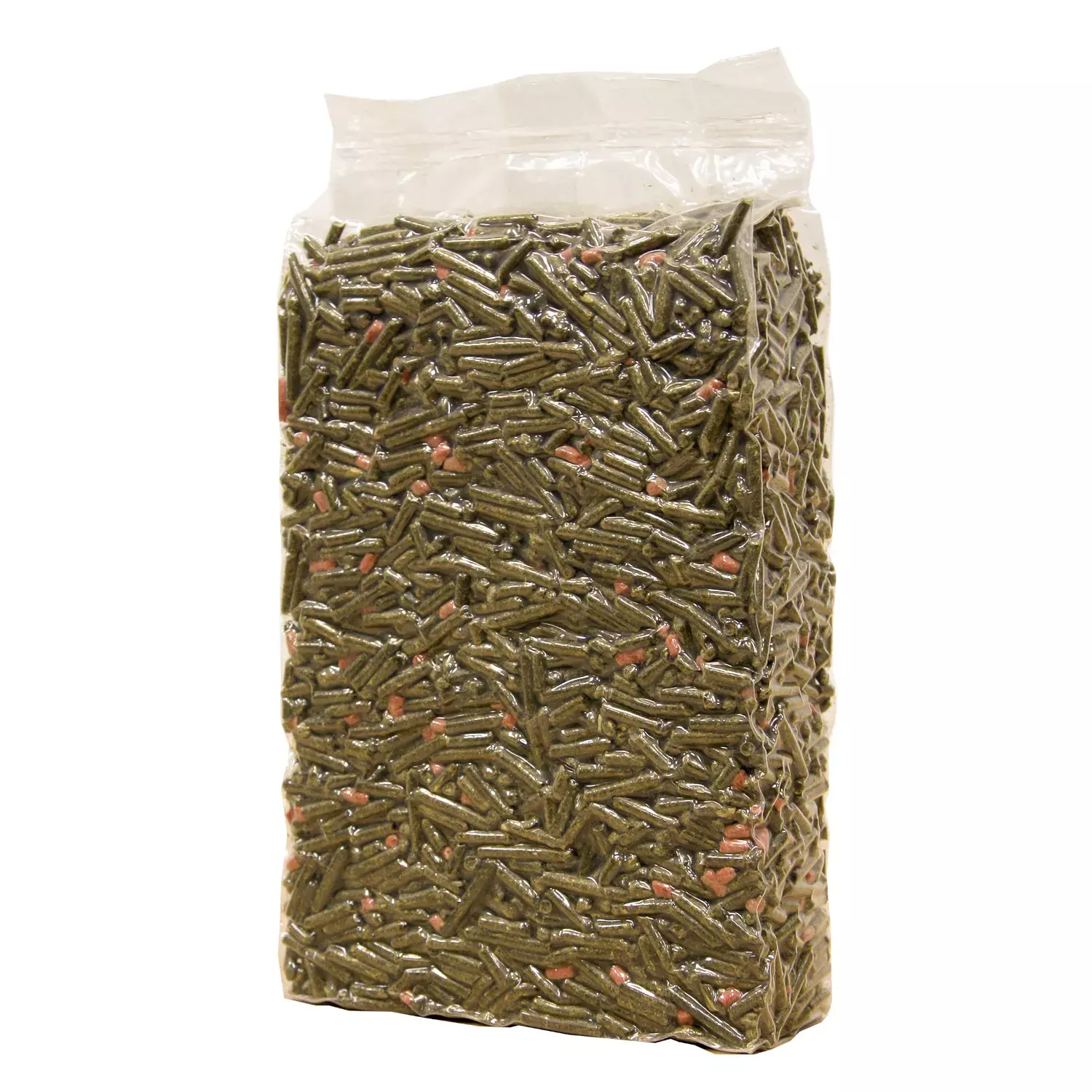Состав: гранулированные продукты (фураж и отруби и производные, зерна и зерновые продукты, плод рожкового дерева, семена маслосодержащих фруктов и производные, семена маслосодержащих фруктов и производные, ароматизаторы и консерванты, одобренные EC) 95,5%, красные гранулы (пекарные продукты, растительного происхождения, мед 10%, минералы, масла и жиры, фруктовый ароматизатор, красители и консерванты, одобренные EC, Инулин мг/кг 8472, МОС мг/кг 6354, ФОС мг/кг 4236, Омега6 188,25 мг/кг, Бета Глюкан 847,24 мг/кг, Омега3 34,77 мг/кг, экстракт Юкки Шидигера 847,24 мг/кг) 4,5%.