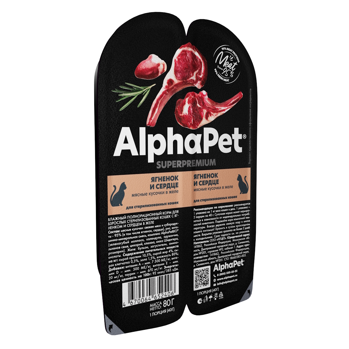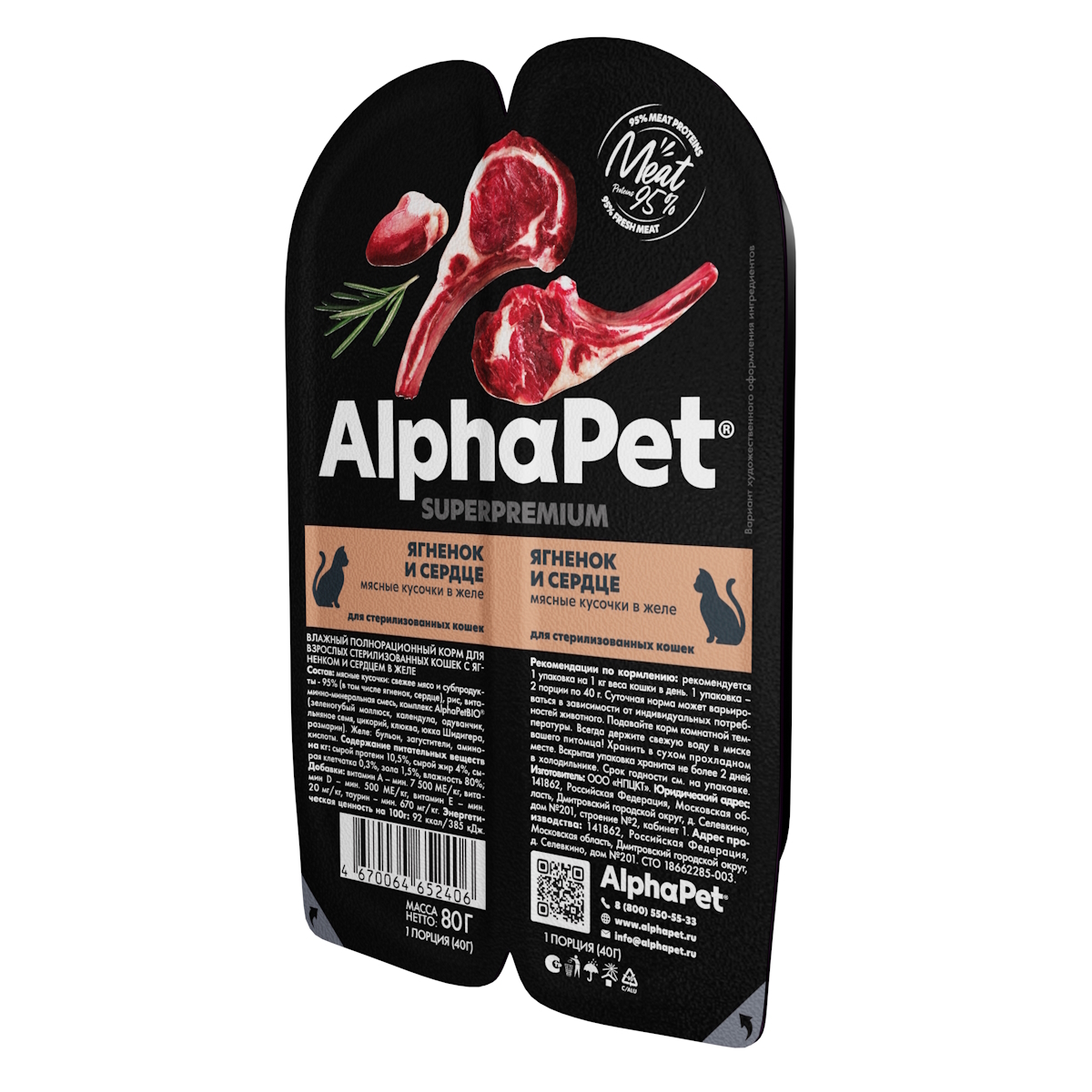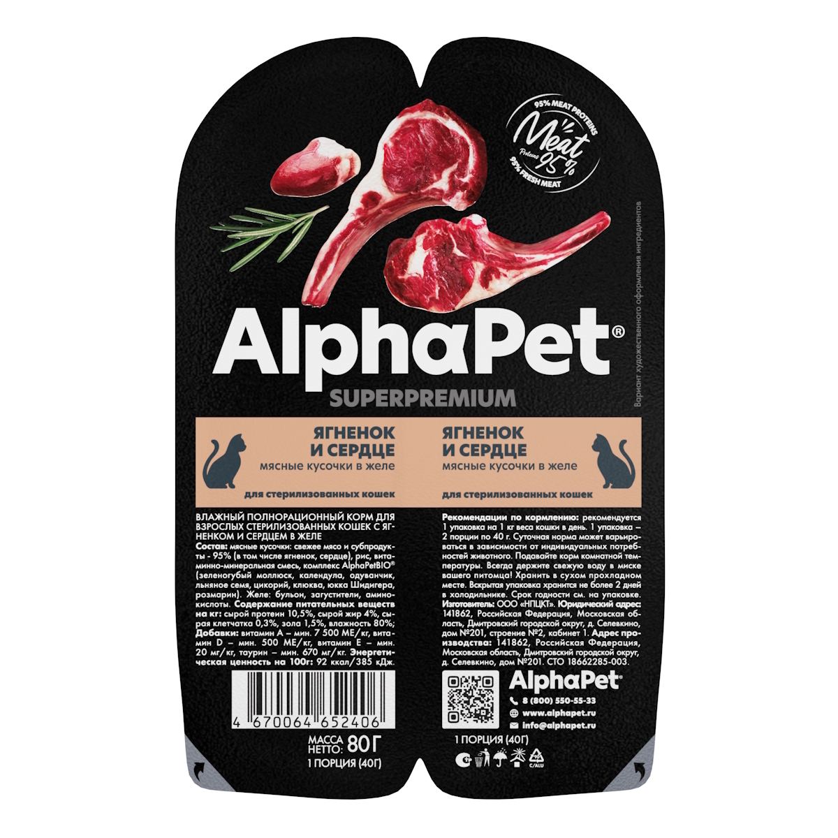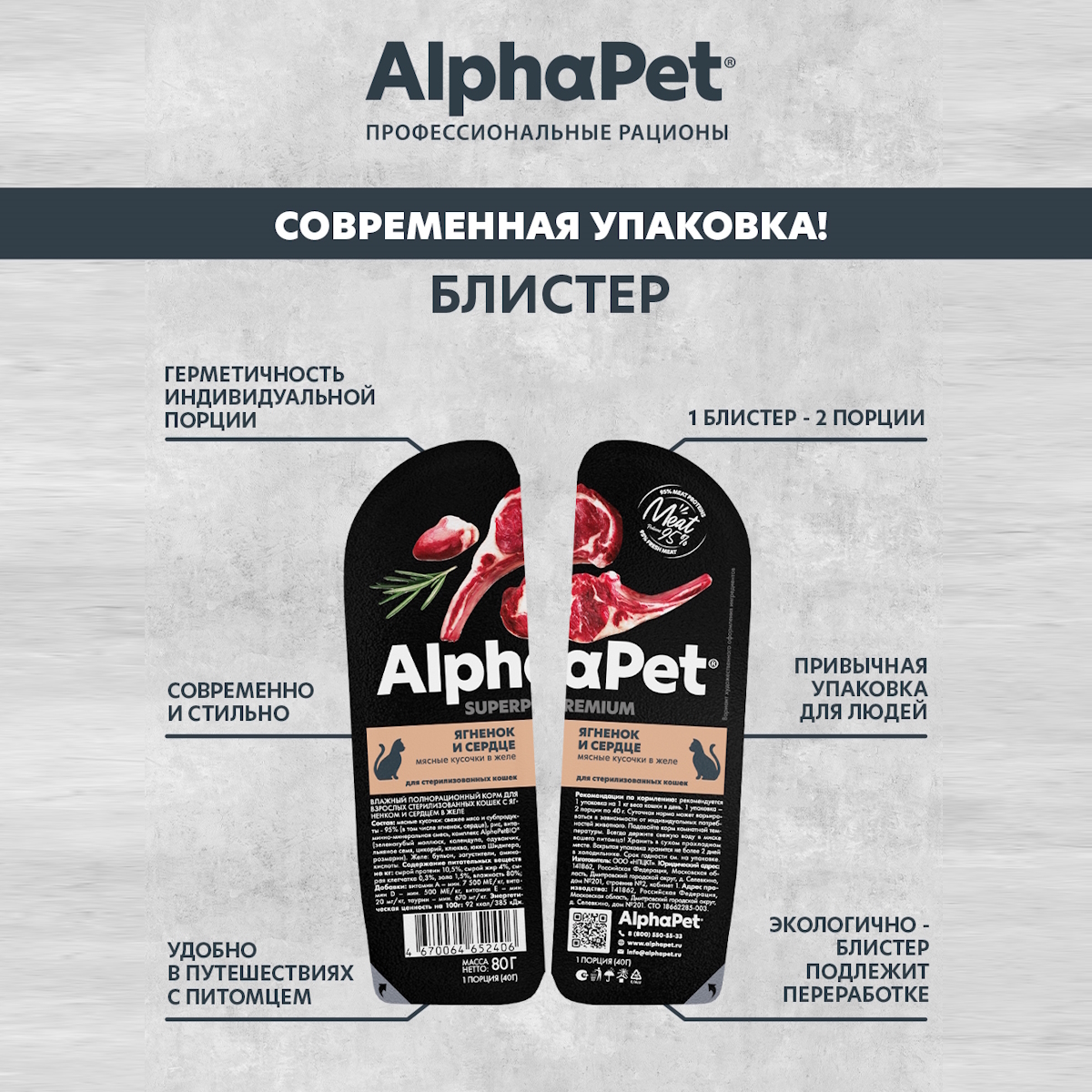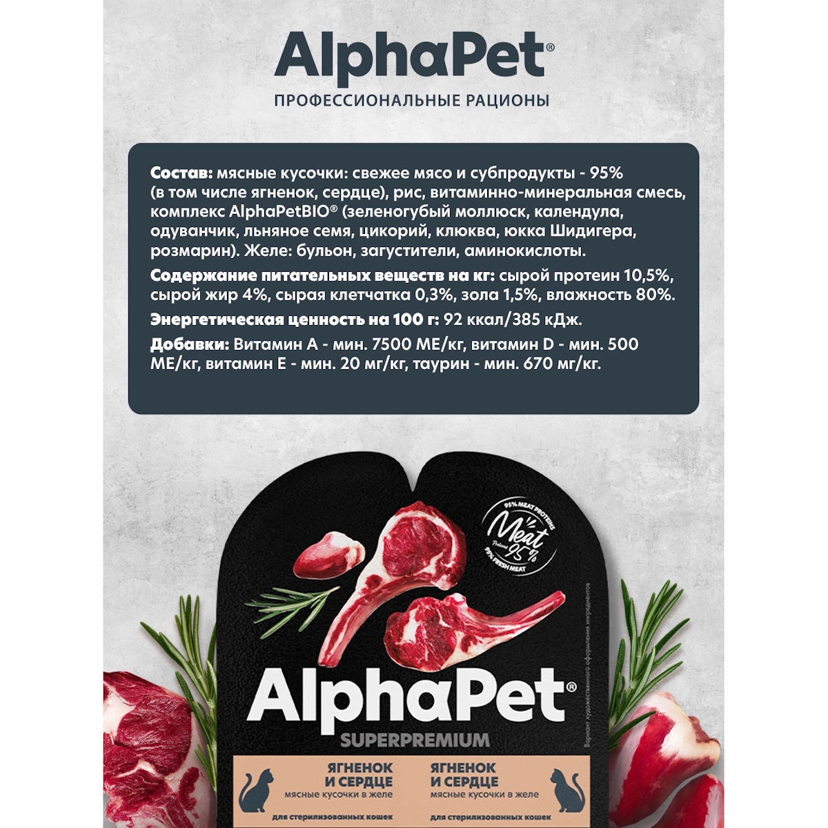 Влажный корм AlphaPet Superpremium для взрослых стерилизованных кошек «Ягненок и сердце мясные кусочки в желе»