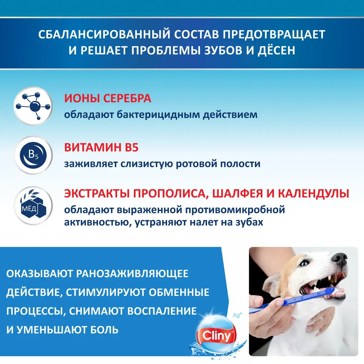 Уход за зубами собак и кошек — это просто, если использовать зубной гель Cliny!