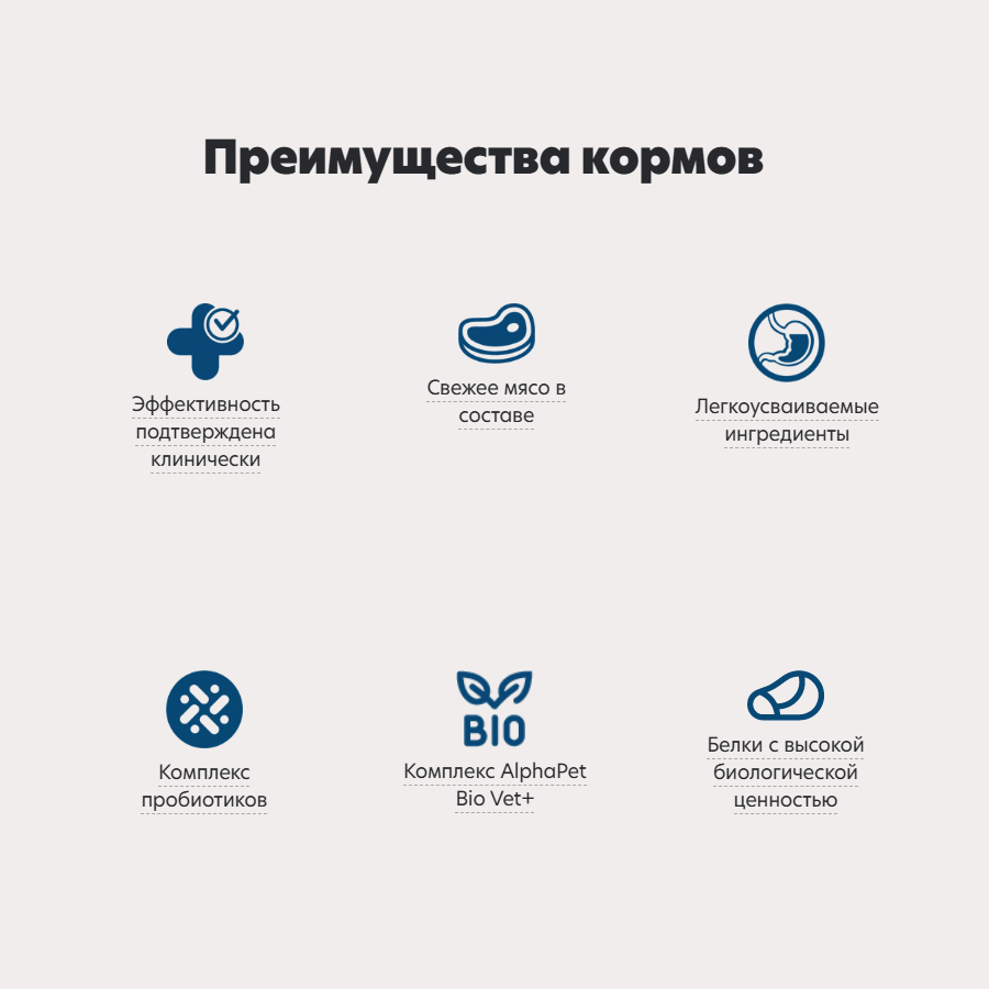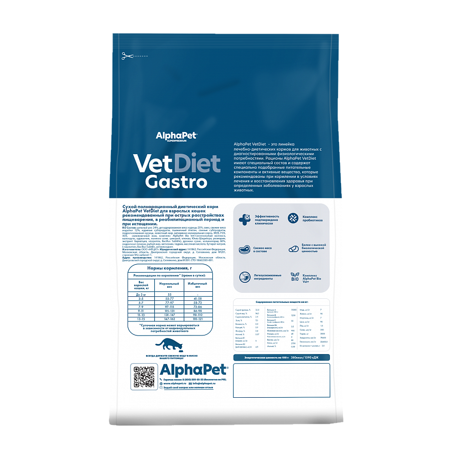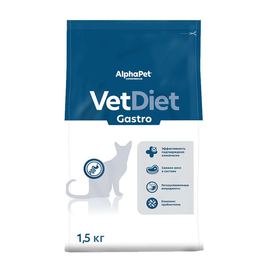 Уценка! Срок 06.08.26/ Сухой диетический корм AlphaPet VetDiet GASTRO для взрослых кошек и котов при острых расстройствах пищеварения, в реабилитационный период и при истощении