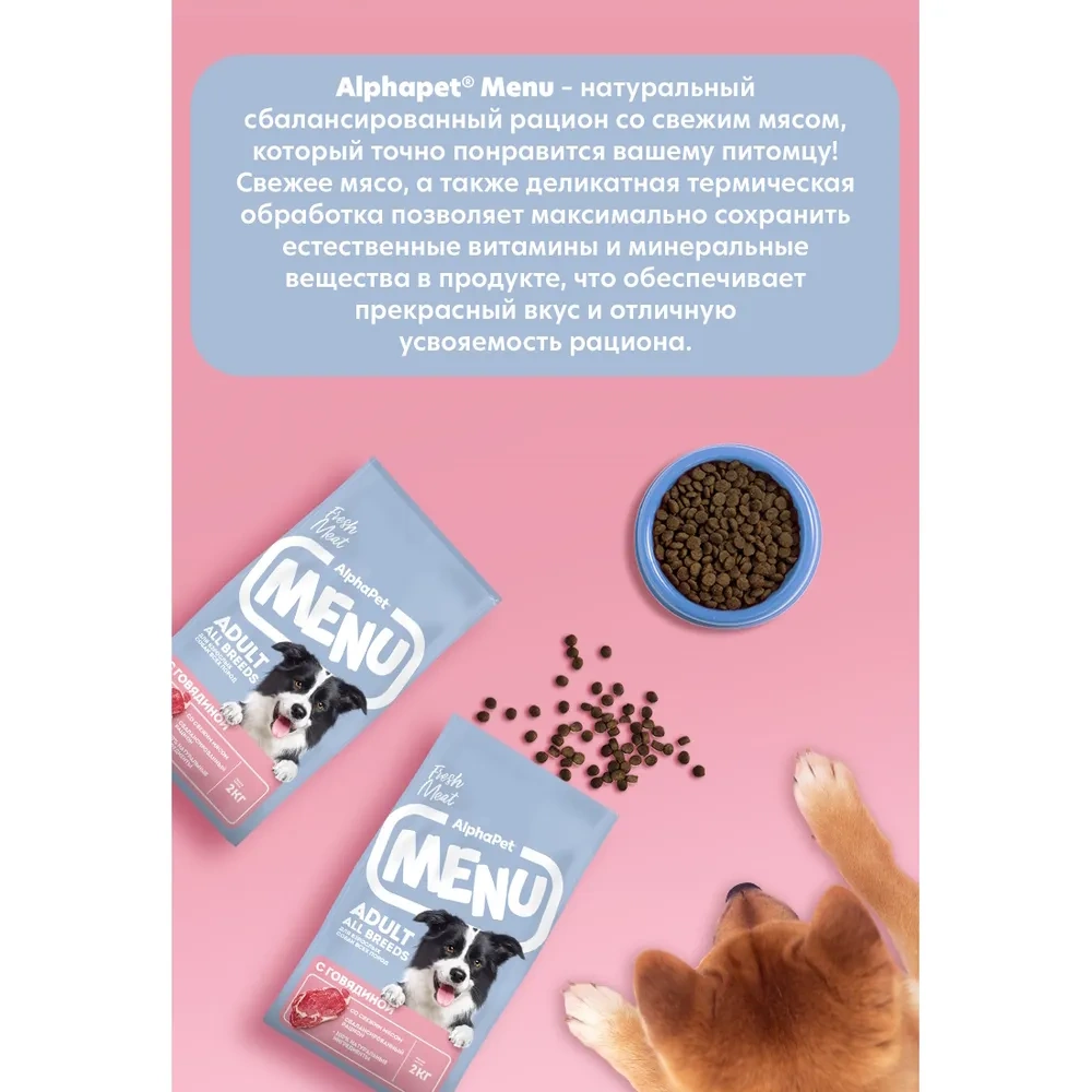 Уценка! Срок 26.07.26/ Сухой корм AlphaPet Menu для взрослых собак всех пород с говядиной