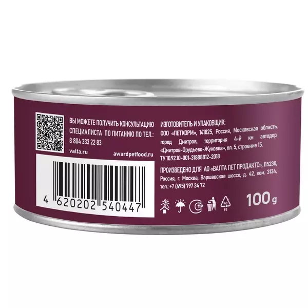 Влажный корм AWARD для котят, паштет из курицы с морковью.