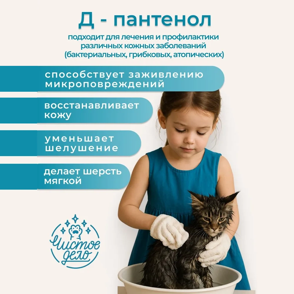 Шампунь Чистое Дело для собак и кошек с хлоргексидином и Д-пантенолом, антибактериальный, гипоаллергенный