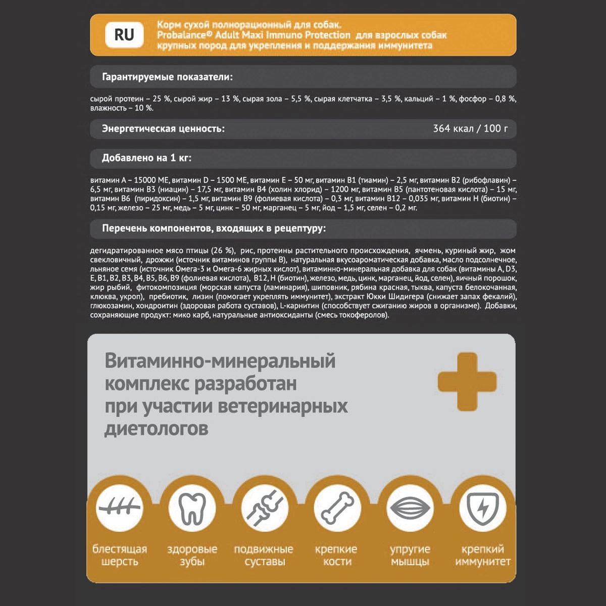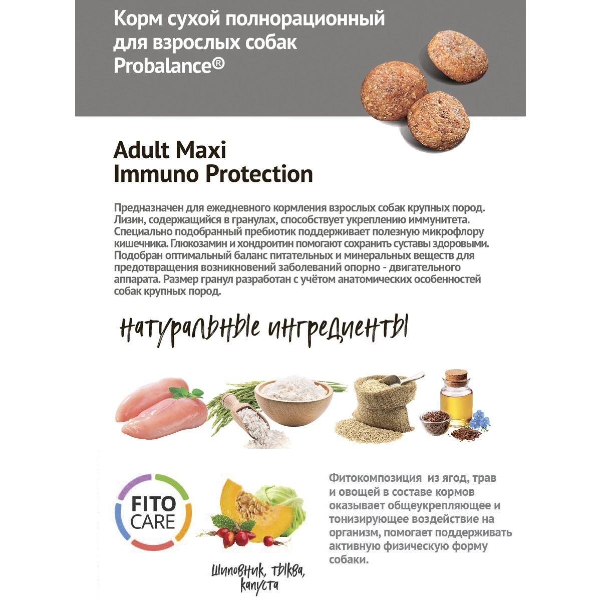 Probalance "Immuno Adult Maxi" - здоровое питание премиум-класса для собак крупных и гигантских пород. Полностью натуральный состав подходит для ежедневного кормления и рекомендован ветеринарами для поддержания иммунитета.