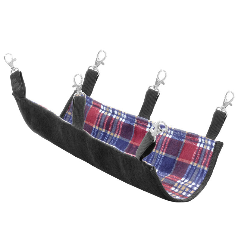 Изделие оборудовано шестью прочными карабинами, при помощи которых его можно зафиксировать в необходимом положении внутри клетки любых габаритов. В таком гамаке вашему любимцу будет максимально комфортно: он сможет скрыться от глаз и спокойно поспать в мягкой лежанке. Изделие легко стирается как вручную, так и с помощью стиральной машинки. Варианты расцветок лицевой стороны - в большом ассортименте.