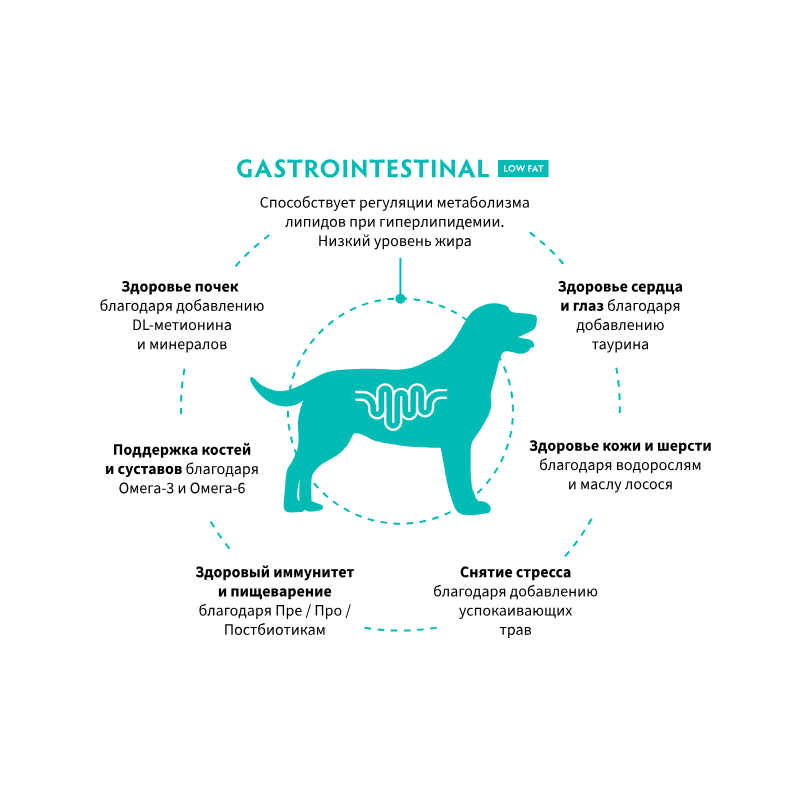 Перед использованием или продолжением приема рекомендуется проконсультироваться с ветеринаром. Давать сухой корм Gastrointestinal Low Fat не более 2 месяцев при первичном курсе лечения.