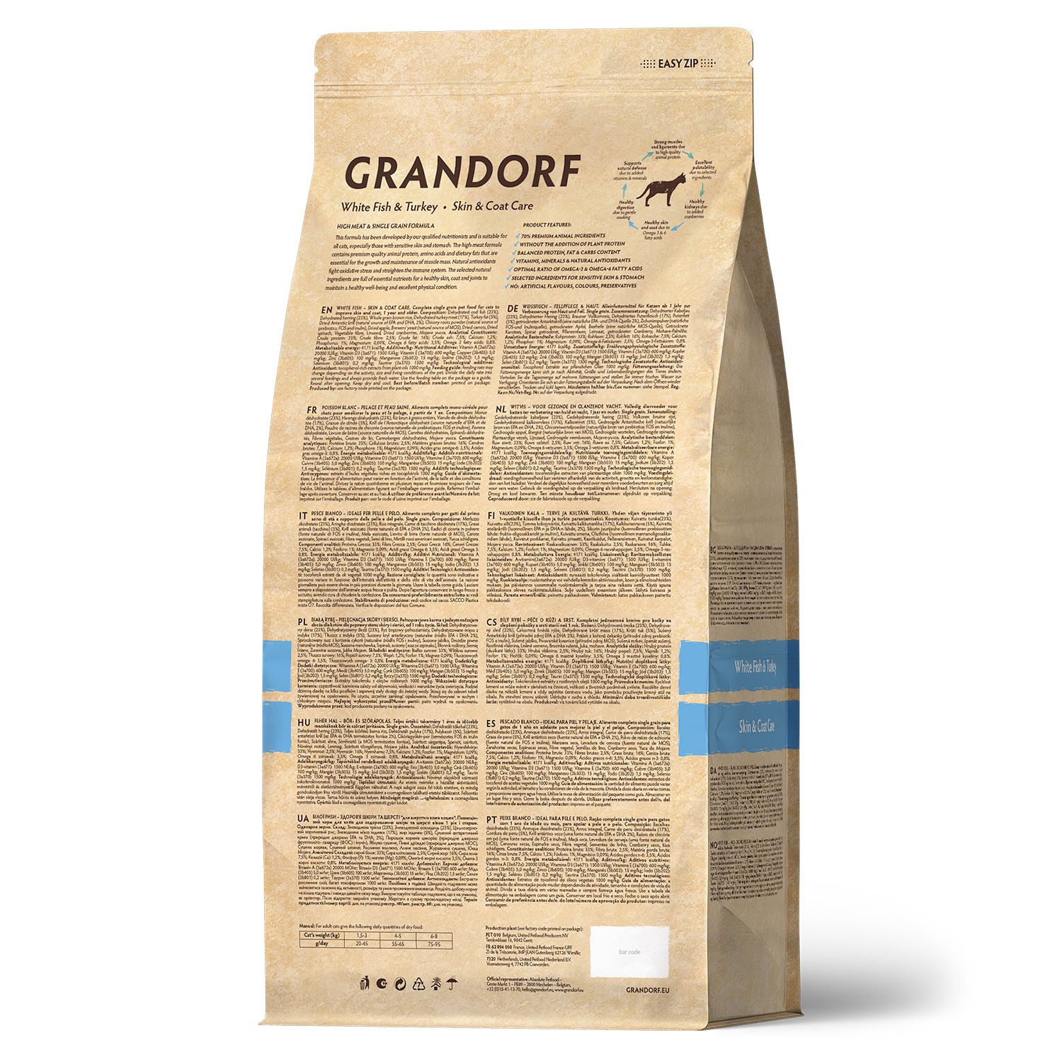 Сухой корм Grandorf CAT White Fish&Turkey SKIN&CARE для взрослых кошек, белая рыба с индейкой - забота о коже и шерсти