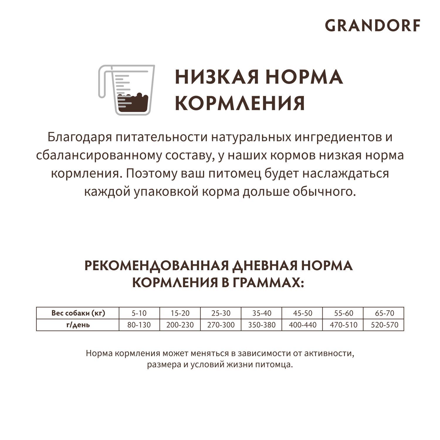 - 65% мяса в составе корма