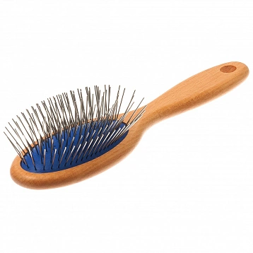 Деревянная ручка из бука удобна в использовании - ультралёгкая и не скользит в руке. Запатентованная система крепления зубьев, не позволяет зубьям вдавливаться внутрь и выпадать, что способствует более качественному расчёсыванию и продлевает срок службы щётки. Скруглённые кончики зубьев делают щётку безопасной для питомца. За счёт длины зубьев при расчесывании шерсть животного хорошо просушивается, и ей придаётся объем.