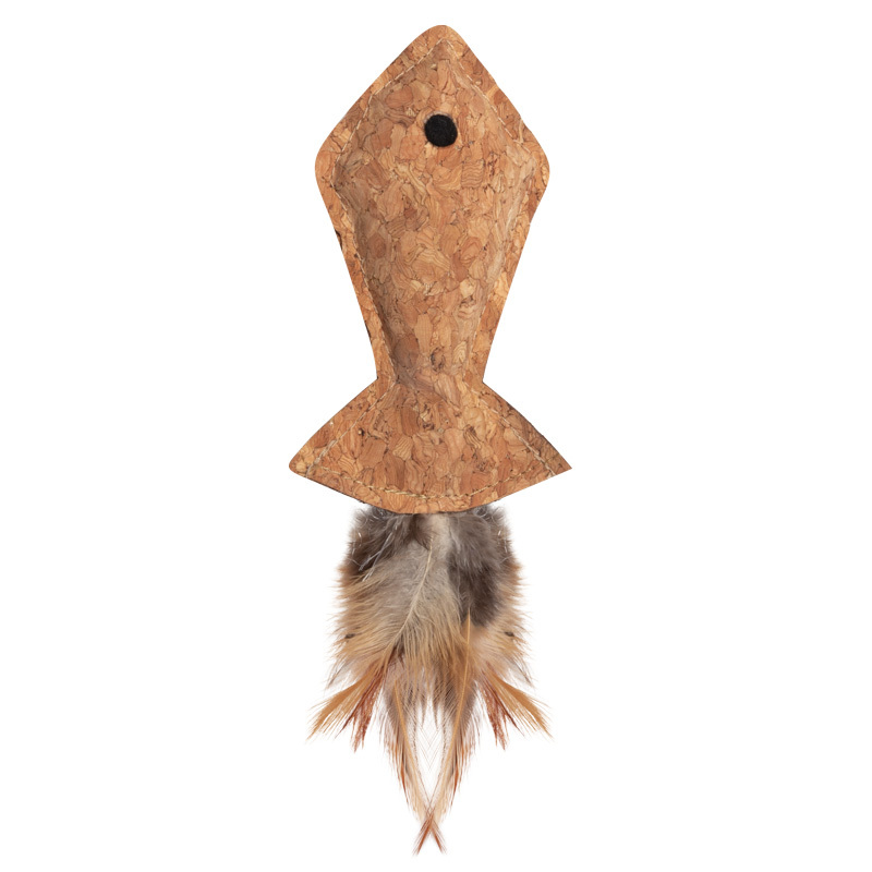 Игрушка для кошек из пробковой коры Triol "Рыбка с перьями", 95/135 мм