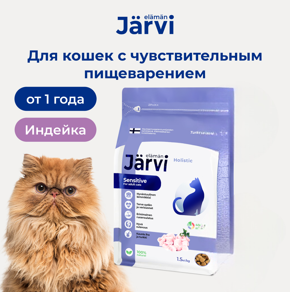 Сухой корм Jarvi для взрослых кошек с чувствительным пищеварением, индейка