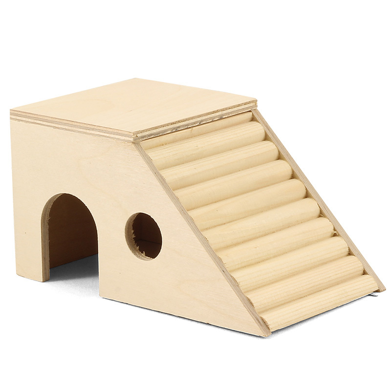 Деревянный домик-лестница для мелких грызунов: крыс, мышей, джунгариков, хомячков, песчанок и т.д. Несколько отверстий, в том числе большой вход и окошко, обеспечивают свободный доступ внутрь изделия. Крыша-лестница достаточно плотная - по ней зверек может забираться наверх. Эта модель прослужит грызуну очень долго, т.к. изготовлена из высококачественных материалов. В домике можно не только отдохнуть или подвигаться, но и поточить об него свои зубки. Изделие выполнено без окрашивания, поэтому его легко можно раскрасить или декорировать на свой вкус. Габаритные размеры конструкции 17х10х9 см отлично подходят для клеток средних размеров.