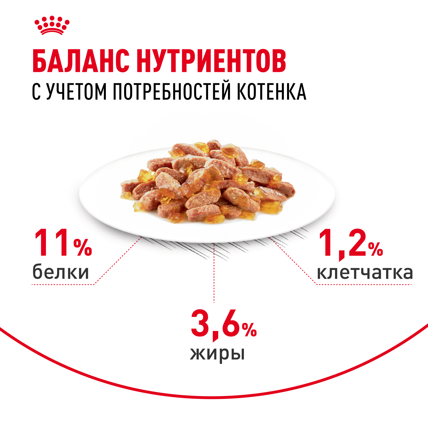 Уценка! Срок 05.07.26/ Пауч Royal Canin Kitten Sterilised для кастрированных и стерилизованных котят (в возрасте от 6 до 12 месяцев), мелкие кусочки в желе