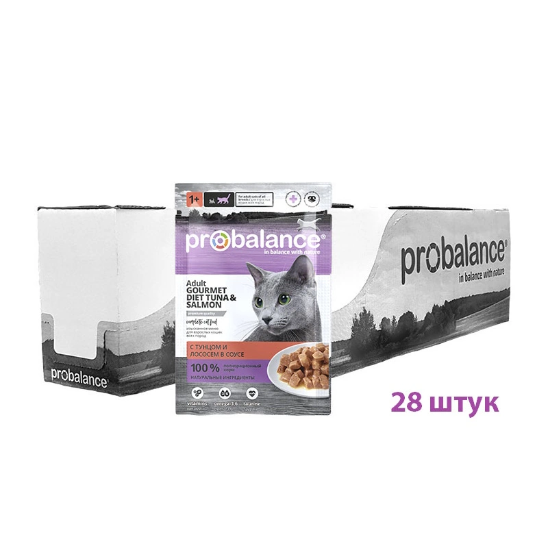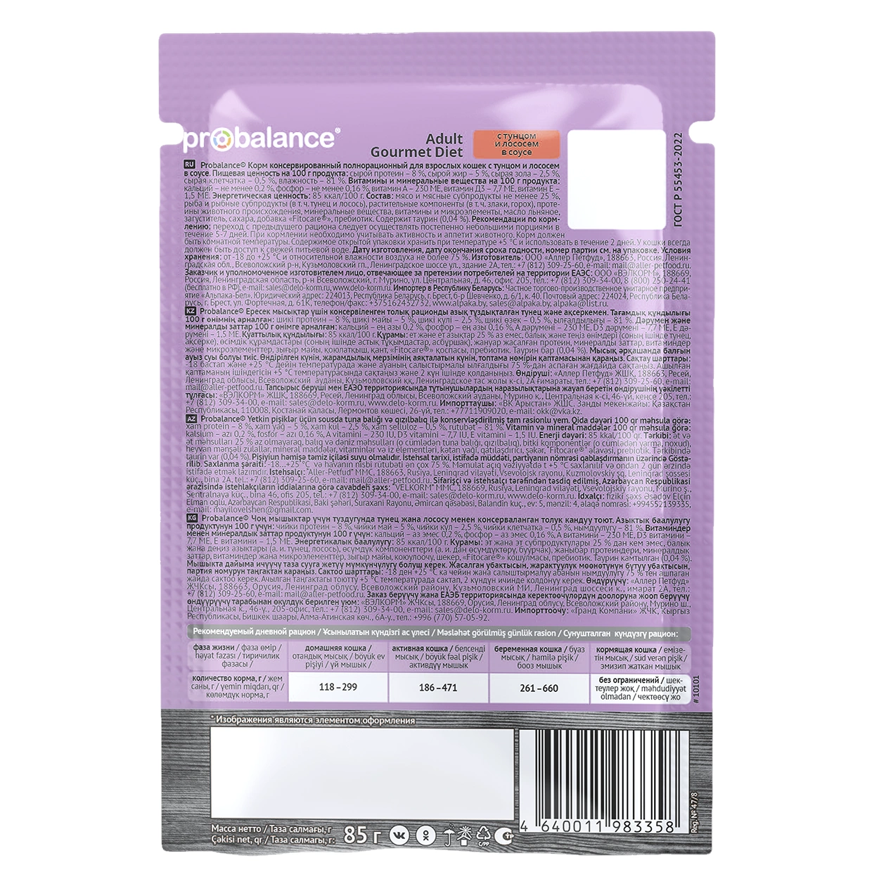 Пауч ProBalance Gourmet Diet для кошек с тунцом и лососем в соусе