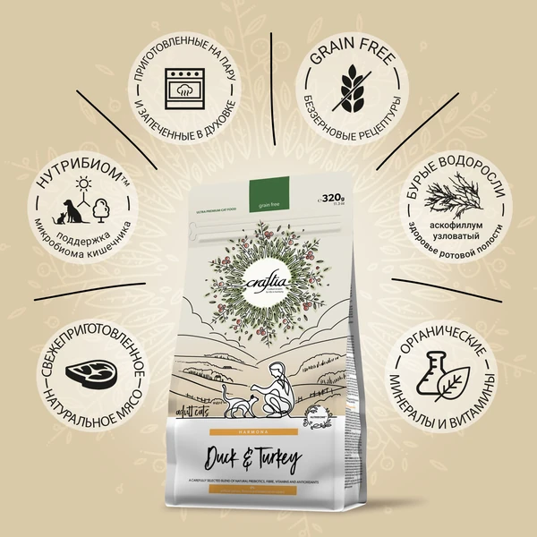 CRAFTIA HARMONA — корм для кошек ультрапремиум класса, созданный с любовью к природе.