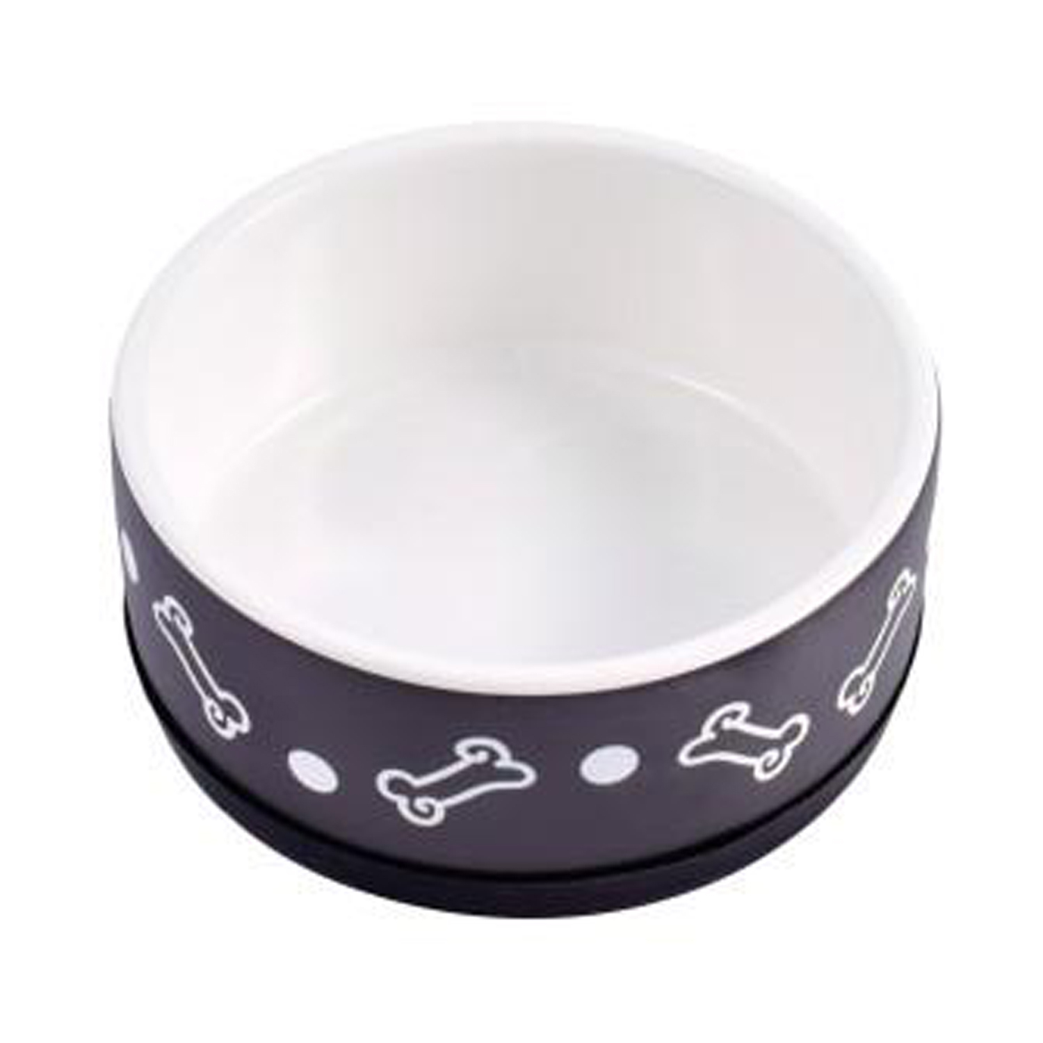 Миска Mr.Kranch керамическая нескользящая для собак 400 мл черная с косточками