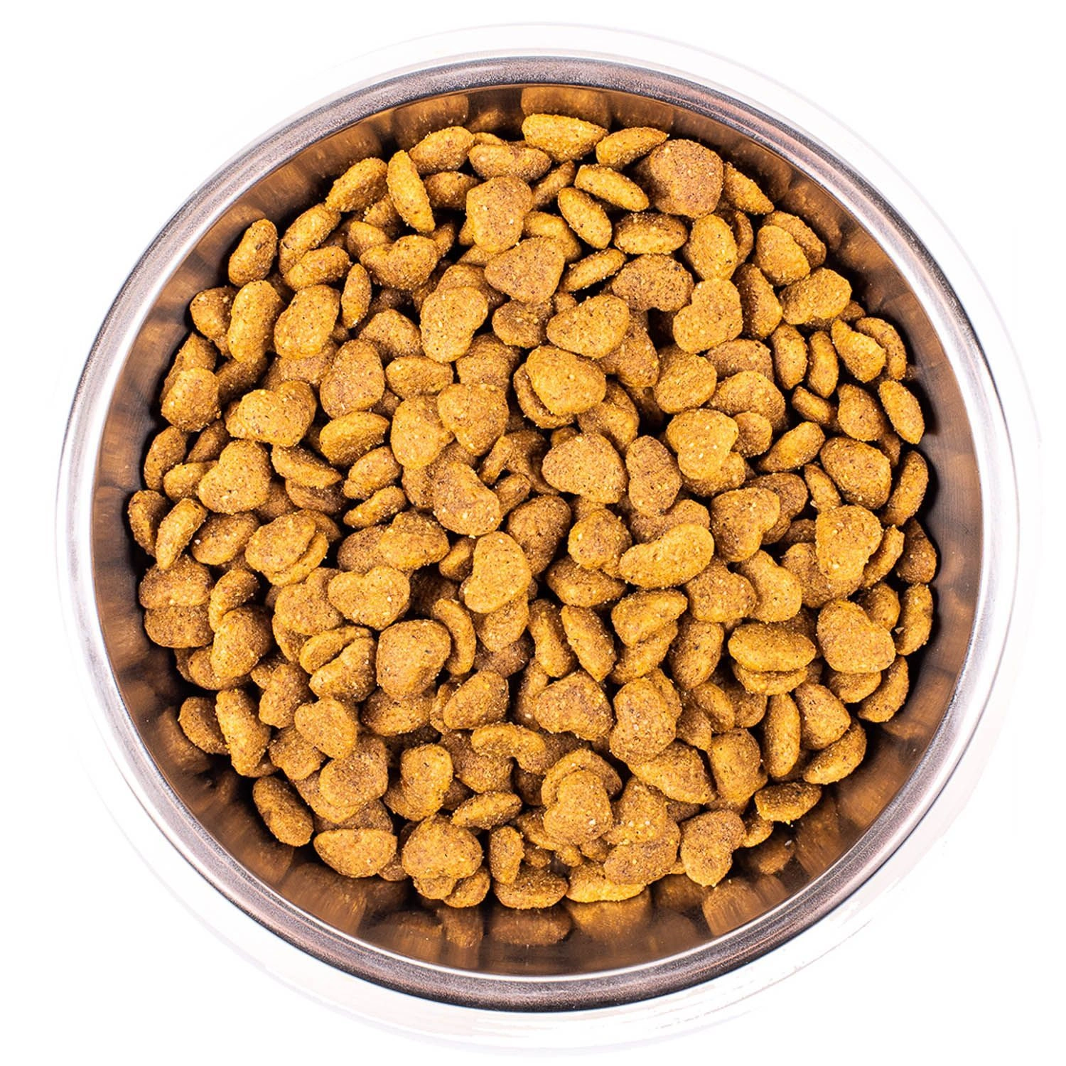 Состав: Курица (дегидрированное мясо 26%, свежее мясо 10%), кукуруза, животный жир (очищенный куриный жир 99,5%), рис, сухая свекольная пульпа, кукурузная клейковина, гидролизированные животные белки (свиная и куриная печень), яичный порошок, рыба (дегидрированный лосось), рыбий жир 1% (очищенное на 99,5% масло лосося), пивные дрожжи, гороховая клетчатка 1%, минеральные вещества, дрожжевые продукты (источник M.O.S. 1%), ксилоолигосахариды (X.O.S 0,3%), юкка Шидигера (0,1%), продукт переработки растений (шиповник 0,1%).