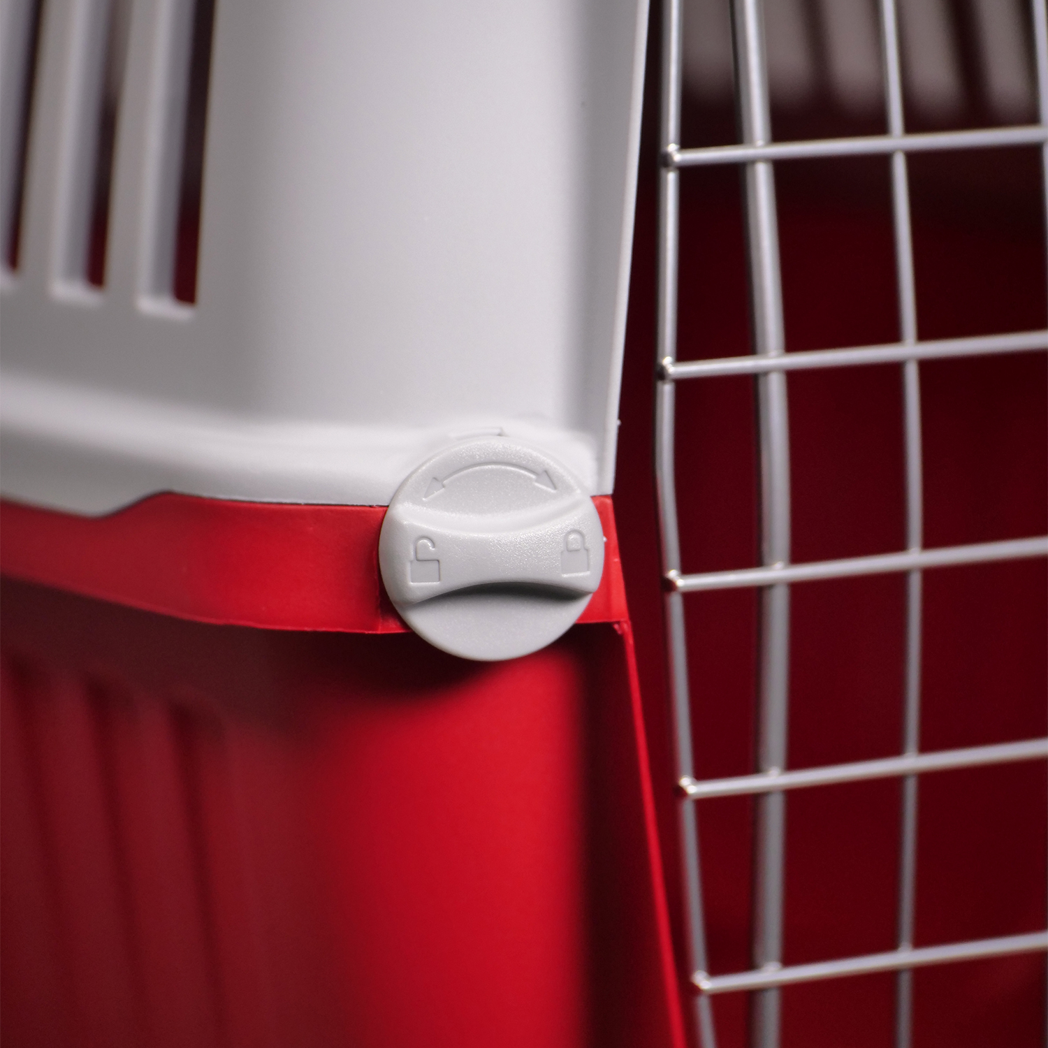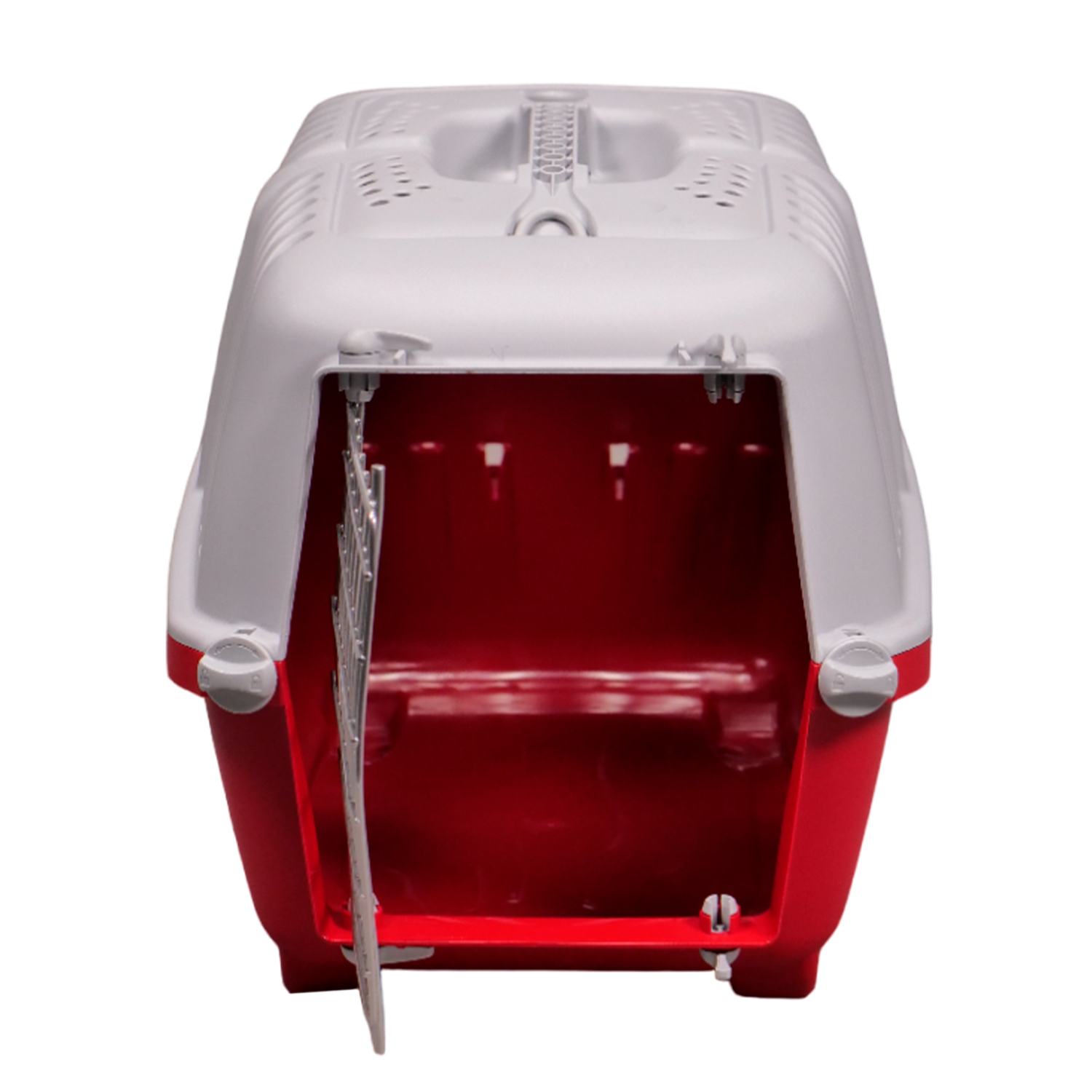 Переноска прекрасно подходит для транспортировки кошек и собак мелких пород. Сделанная из качественного пластика переноска с металлической дверью очень надежна: поддон, так же, как и дверь, крепится к крышке современными замками - при этом имеются дополнительные фиксаторы. Переноска легко собирается, имеет влитую в корпус ручку и специальные отверстия в корпусе для циркуляции воздуха. Все это делает ее удобной не только для вас, но и для вашего питомца!