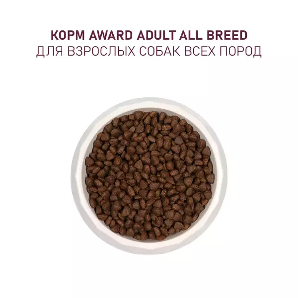 Сухой корм AWARD для взрослых собак всех пород с говядиной и курицей с добавлением брокколи и черники.