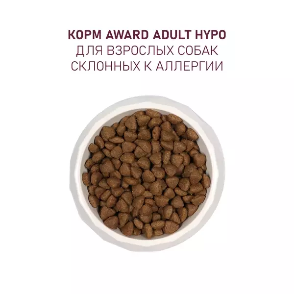 Сухой корм AWARD HYPO для взрослых собак всех пород с белой рыбой с добавлением брокколи, сельдерея и семян льна