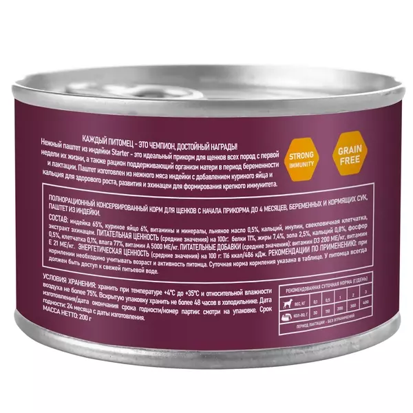 Нежный паштет из индейки - это идеальный прикорм для щенков с первой недели их жизни, а также рацион поддерживающий организм матери в период беременности и лактации.