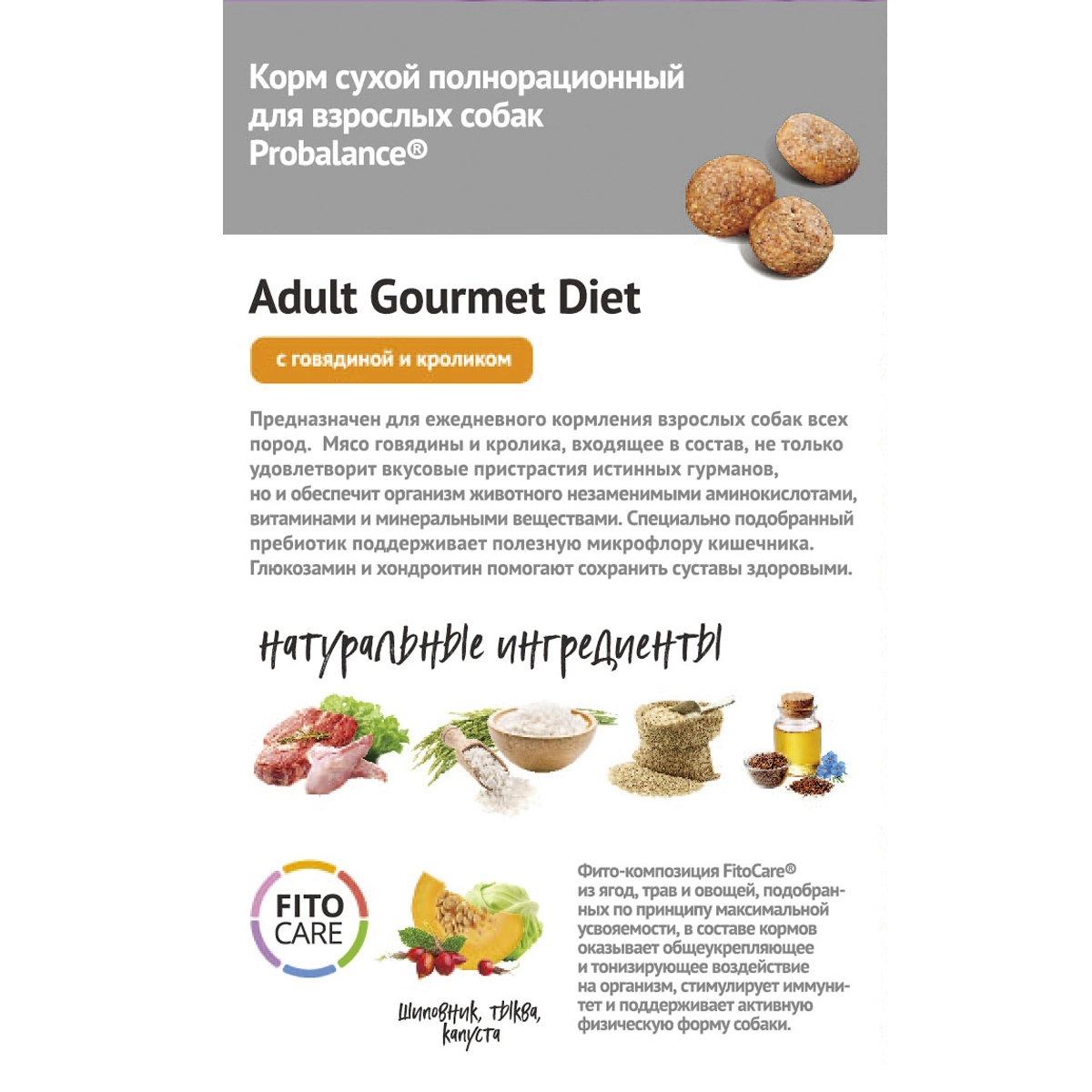 Сухой корм ProBalance Gourmet diet Adult для взрослых собак с говядиной и кроликом