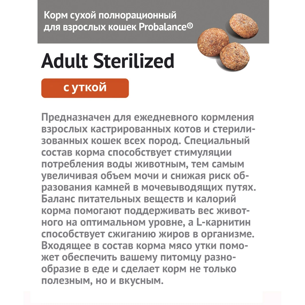 Сухой корм ProBalance Adult Sterilized Duck для кастрированных котов и стерилизованных кошек с уткой