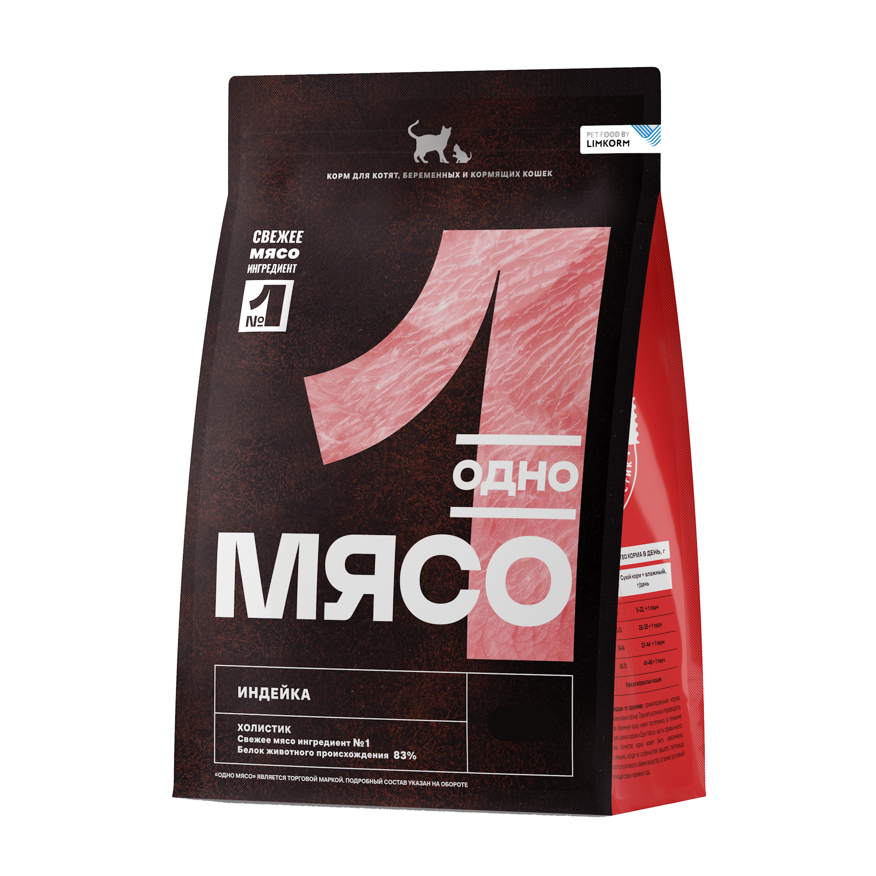 Сухой корм "Одно Мясо" для котят, беременных и кормящих кошек с мясом индейки