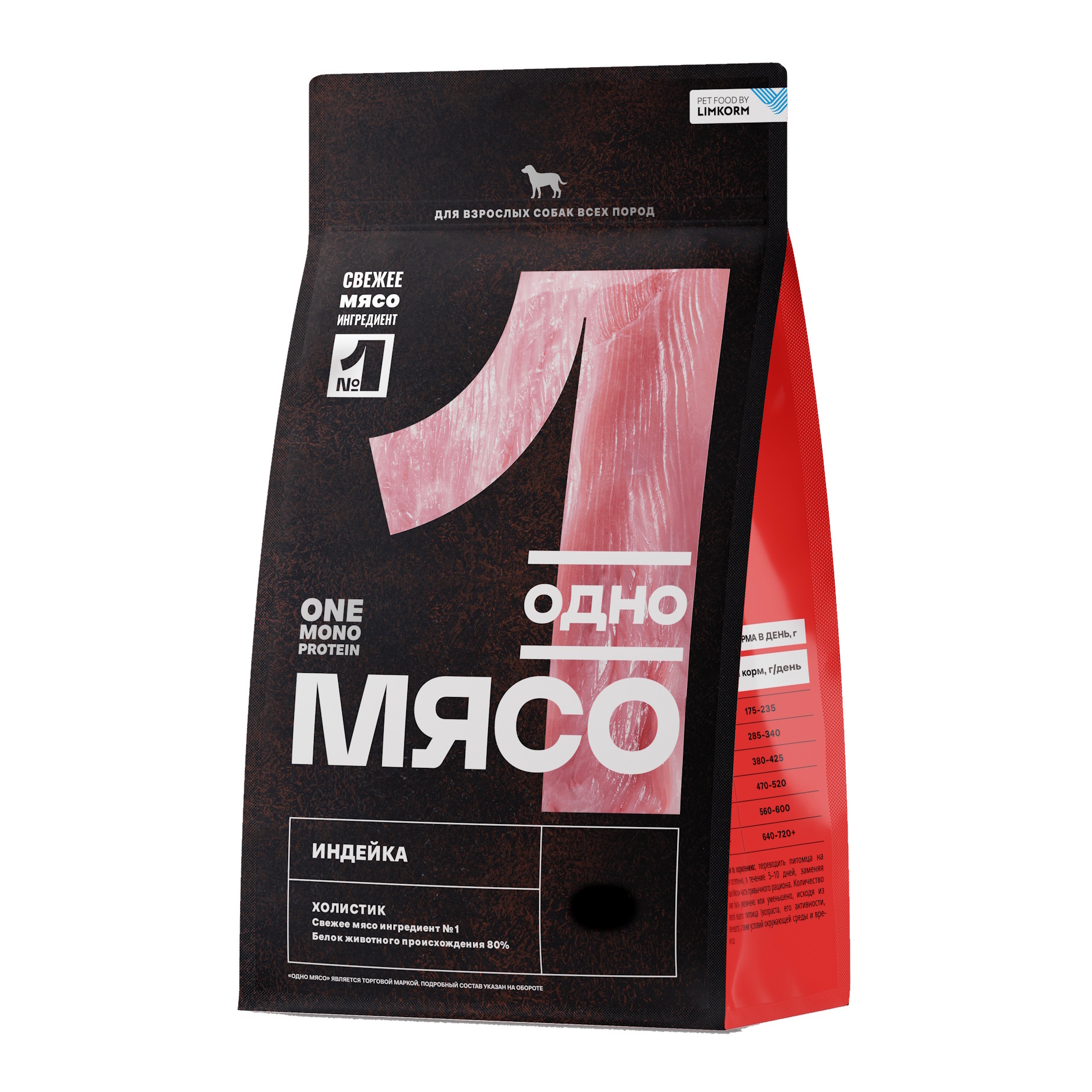 Сухой корм "Одно Мясо" для взрослых собак всех пород с мясом индейки