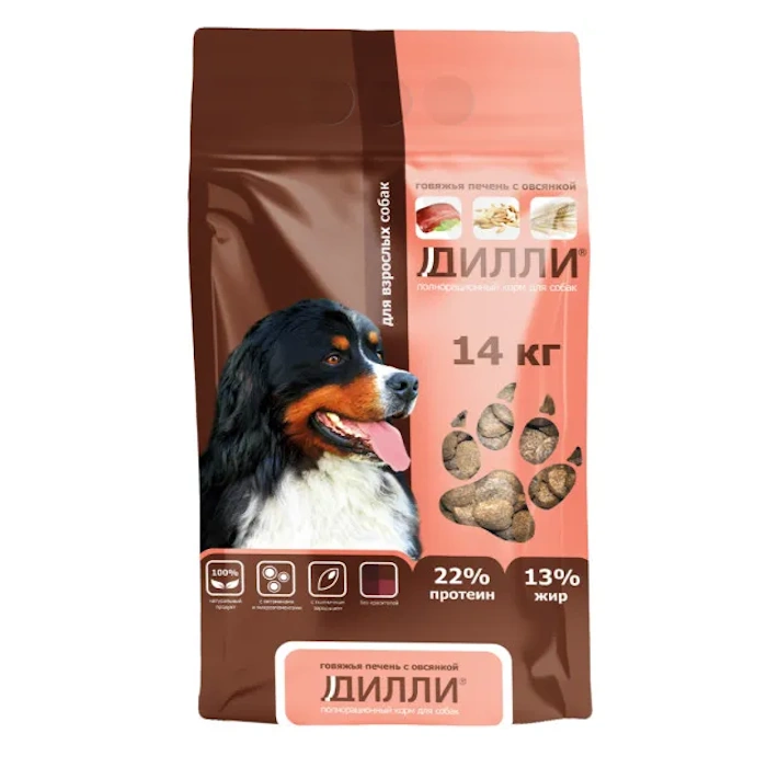 Сухой корм Дилли для взрослых собак "Говяжья печень с овсянкой"