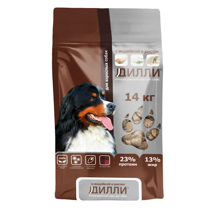 Сухой корм Дилли для взрослых собак с индейкой и рисом