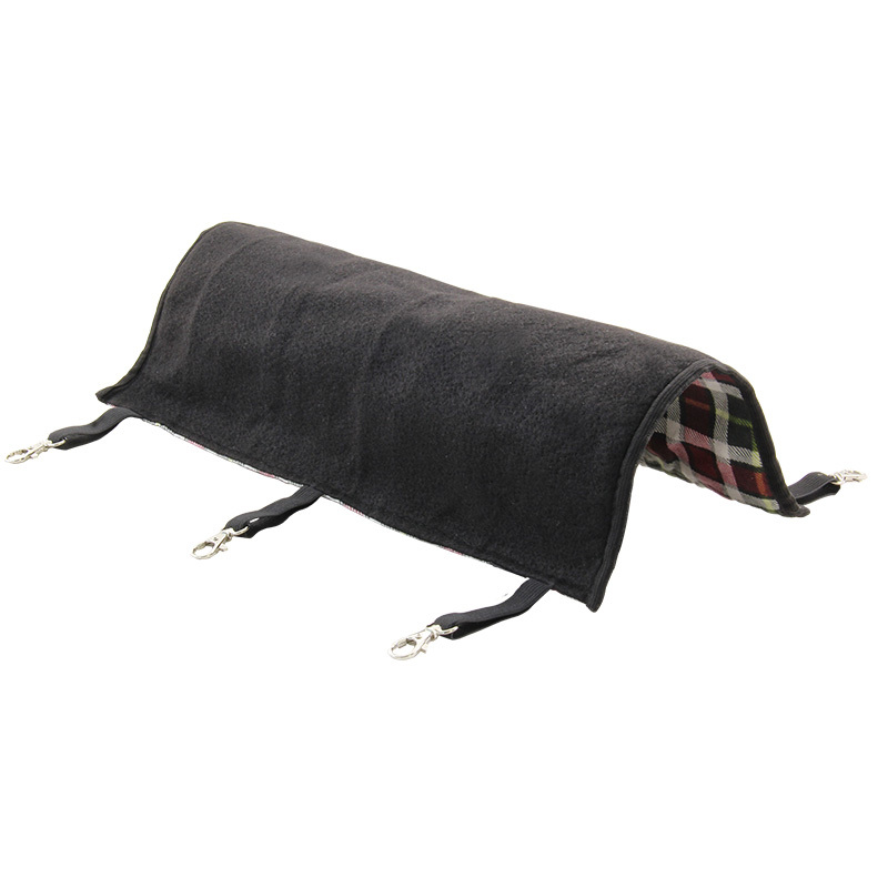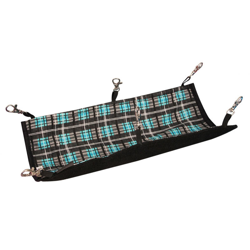 Гамак размерами 29х43 см изготовлен из качественной фланелевой ткани с наполнением из прессованного синтепона, благодаря чему он мягкий, теплый и уютный. Изделие оборудовано шестью прочными карабинами, при помощи которых его можно зафиксировать в необходимом положении внутри клетки любых габаритов. В таком гамаке вашему любимцу будет максимально комфортно: он сможет скрыться от глаз и спокойно поспать в мягкой лежанке. Изделие легко стирается как вручную, так и с помощью стиральной машинки.