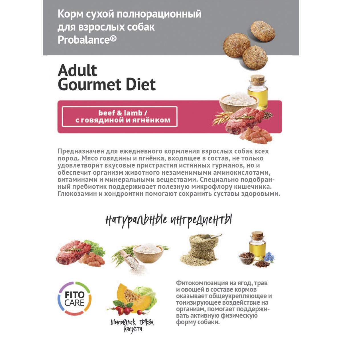 Корм Probalance "Gourmet Diet Adult Beef & Lamb" - вкусная еда с пользой для питомца.
