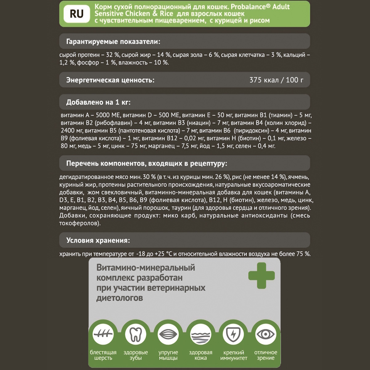 Уценка! Повр.упак. / Сухой корм ProBalance Sensitive для взрослых кошек с чувствительным пищеварением, с курицей и рисом