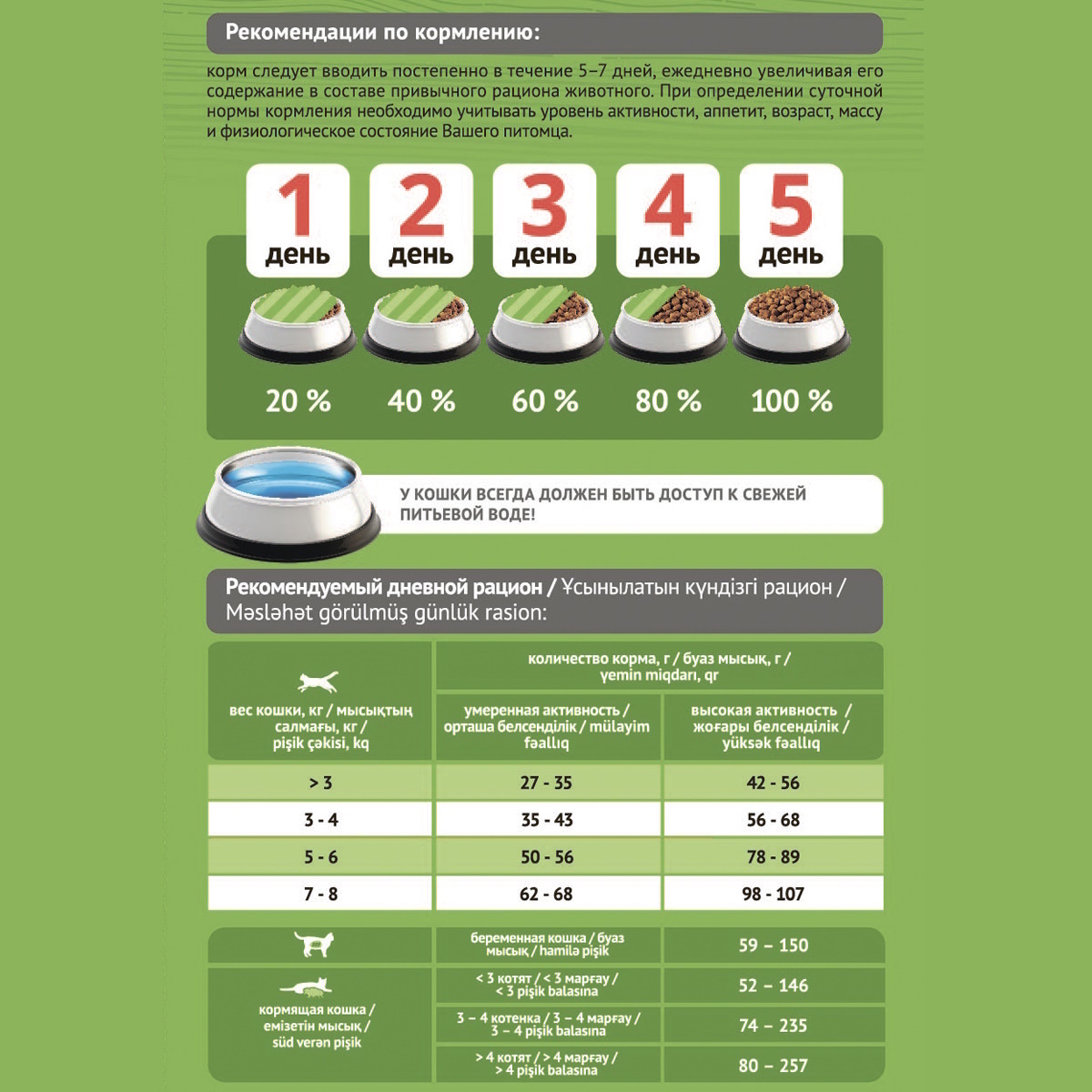 СОСТАВ: Дегидратированное мясо мин. 30% (в т. ч. из курицы мин. 26%), рис (не менее 14 %), ячмень, куриный жир, протеины растительного происхождения, натуральные вкусоароматические добавки, жом свекловичный, витаминно- минеральная добавка для кошек (витамины А, D3, Е, В1, В2, В3, В4, В5, В6, В9 (фолиевая кислота), В12, Н (биотин), железо, медь, цинк, марганец, йод, селен), яичный порошок, таурин (для здоровья сердца и отличного зрения). Добавки, сохраняющие продукт: микокарб, натуральные антиоксиданты (смесь токоферолов).