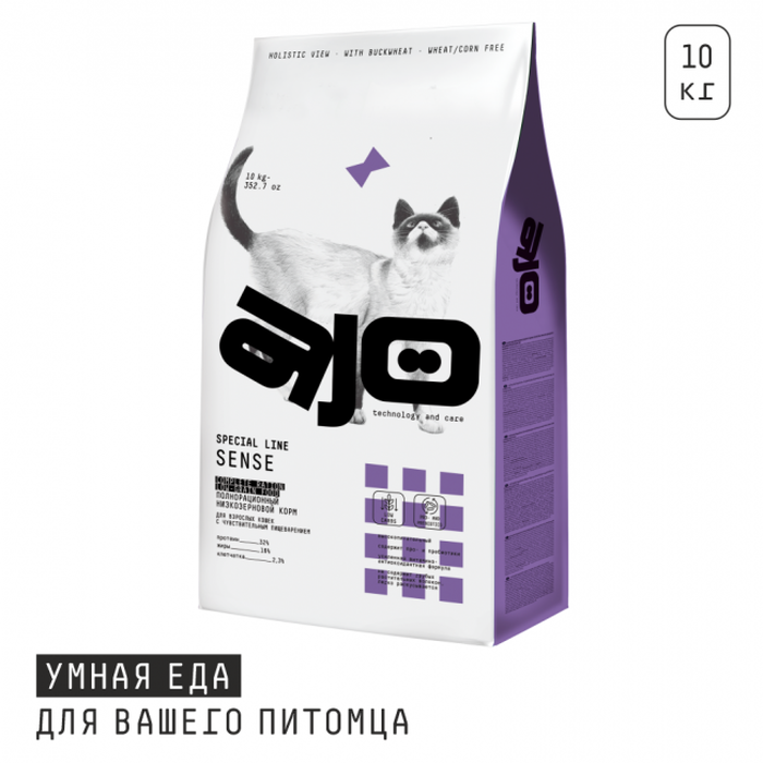 AJO (Айо) Cat Sense Сухой полнорационный корм для кошек с чувствительным пищеварением - это идеальное решение для кошек с чувствительным пищеварением.