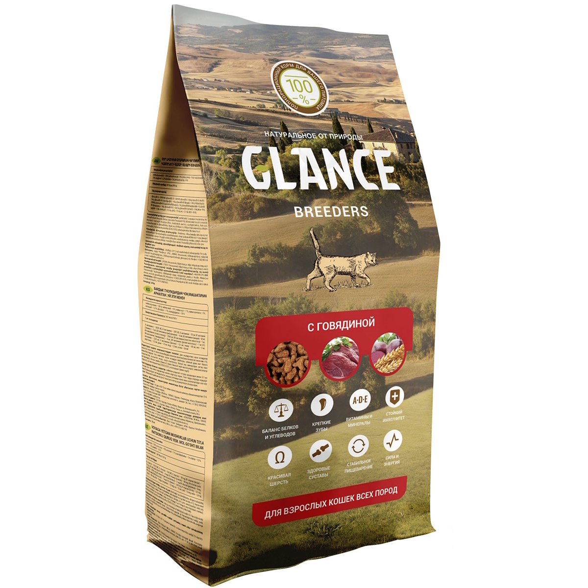 Уценка! Повр.упак. / Сухой корм Glance для кошек с говядиной