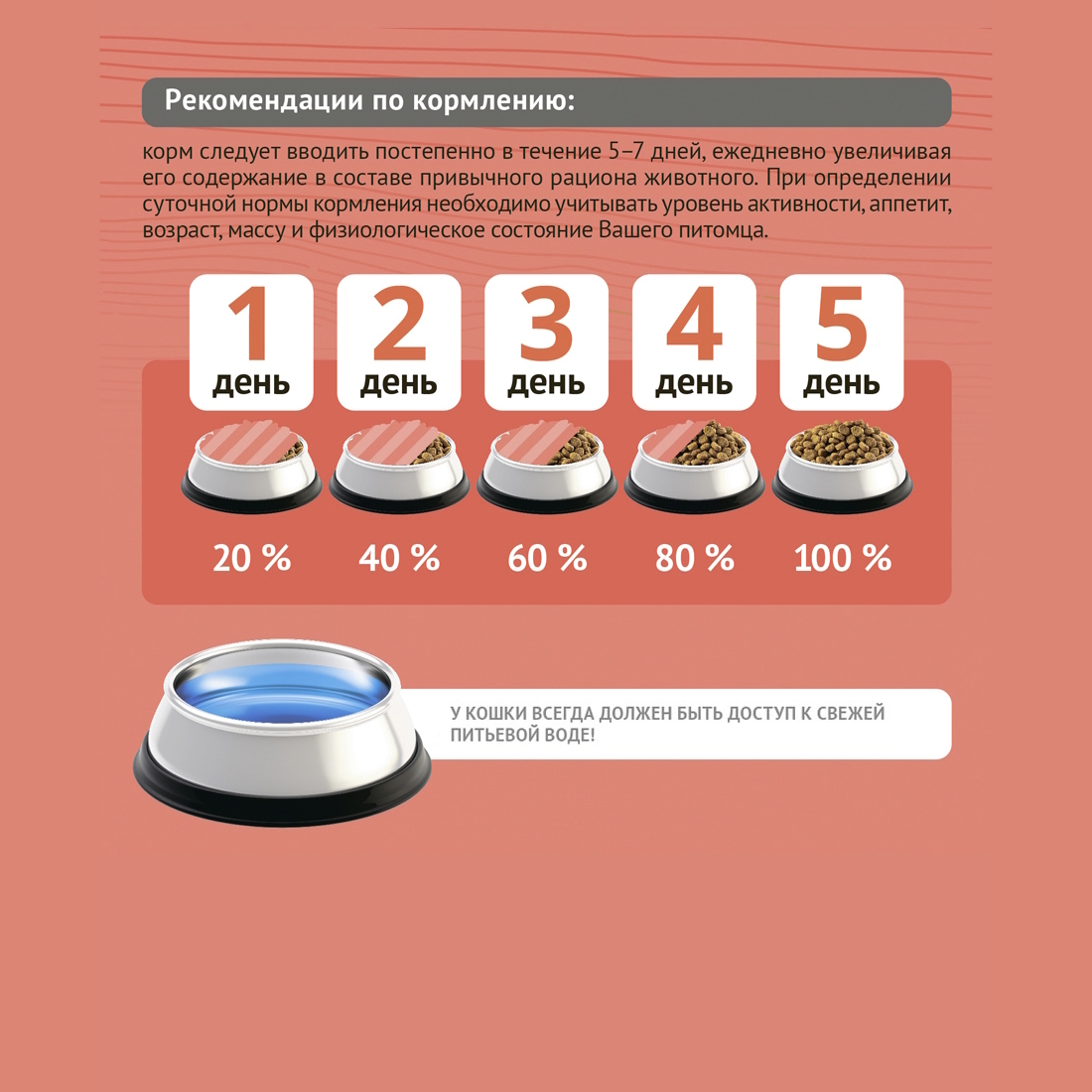 Для здоровья в состав корма включен таурин (аминокислота, влияющая на остроту зрения) и витаминно-минеральный комплекс.