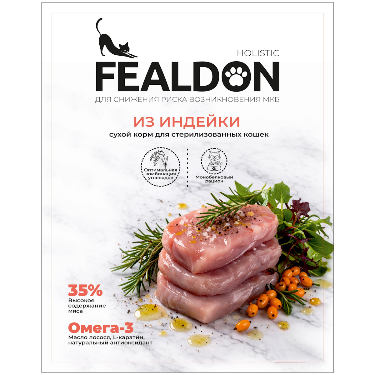 Сухой корм Fealdon для стерилизованных кошек и кастрированных котов с индейкой - купить в ЗооГастроном, доставка по России