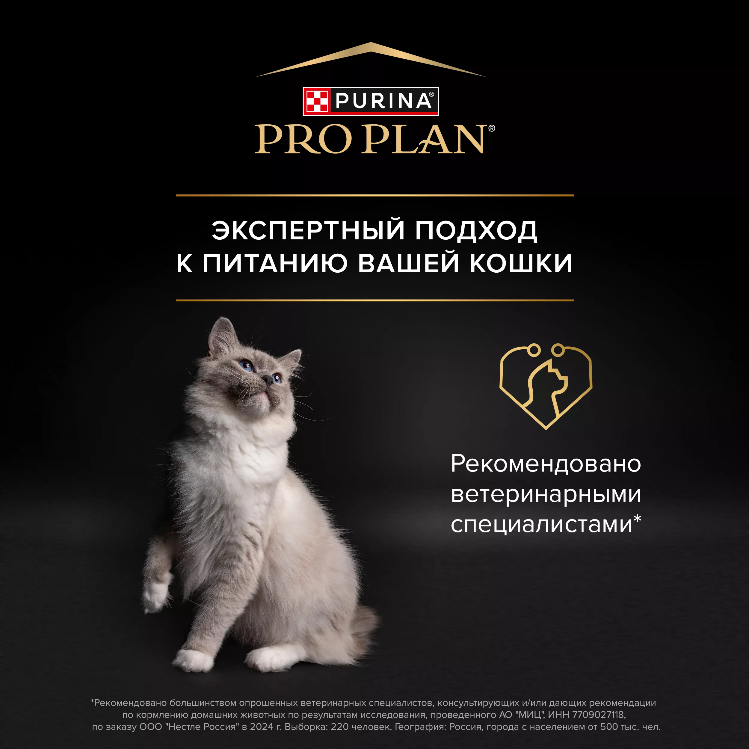 *** Рекомендовано большинством опрошенных ветеринарных специалистов, консультирующих и/или дающих рекомендации по кормлению домашних животных, по результатам исследования, проведенного АО "МИЦ", ИНН 7709027118, по заказу ООО "Нестле Россия" в 2024 г. Выборка: 220 человек. География: Россия, города с населением от 500 тыс. чел.