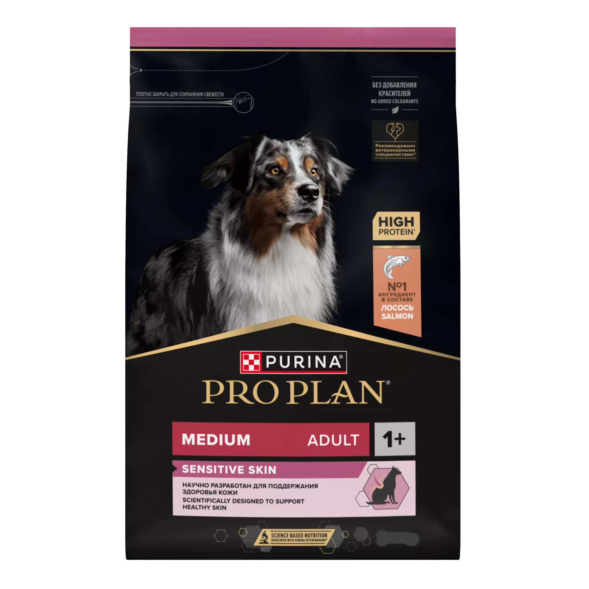 Изучая потребности собак на протяжении многих лет, команда квалифицированных ветеринарных специалистов и диетологов PURINA разработала сухой корм PRO PLAN® Sensitive skin - ежедневный рацион с высоким содержанием лосося для собак средних пород.. Этот полнорационный корм полностью сбалансирован по составу и помогает поддерживать здоровье чувствительной кожи.