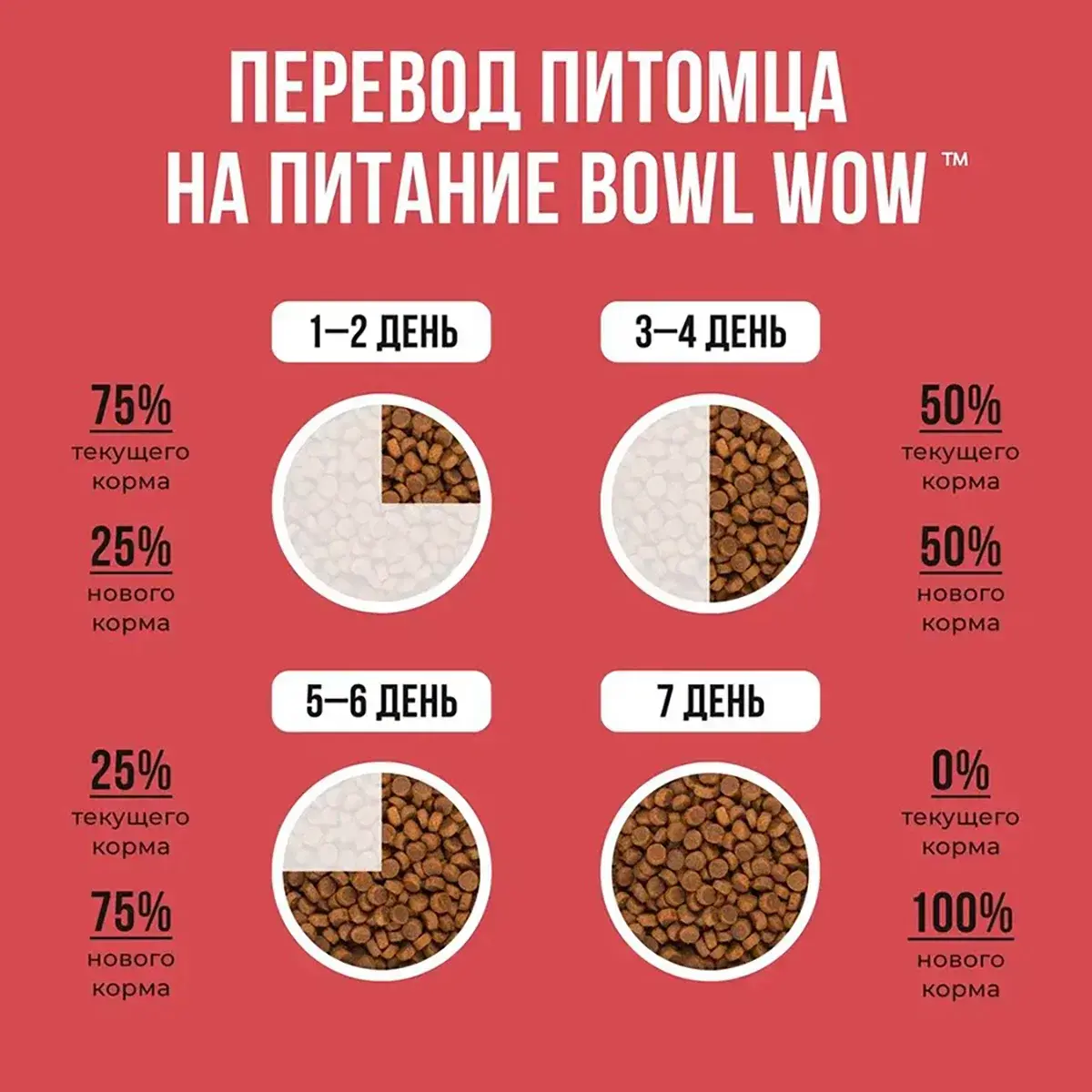 Полнорационный корм BOWL WOW с индейкой, курицей, рисом и свеклой разработан специально для собак средних пород (весом от 10 до 25 кг).