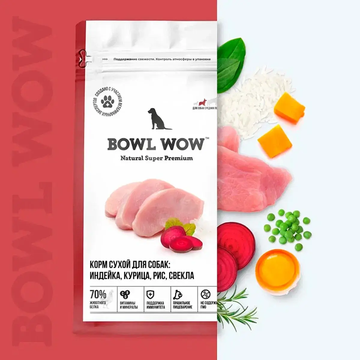 Сухой корм BOWL WOW для собак средних пород с индейкой, курицей и свеклой | Zoогастроном