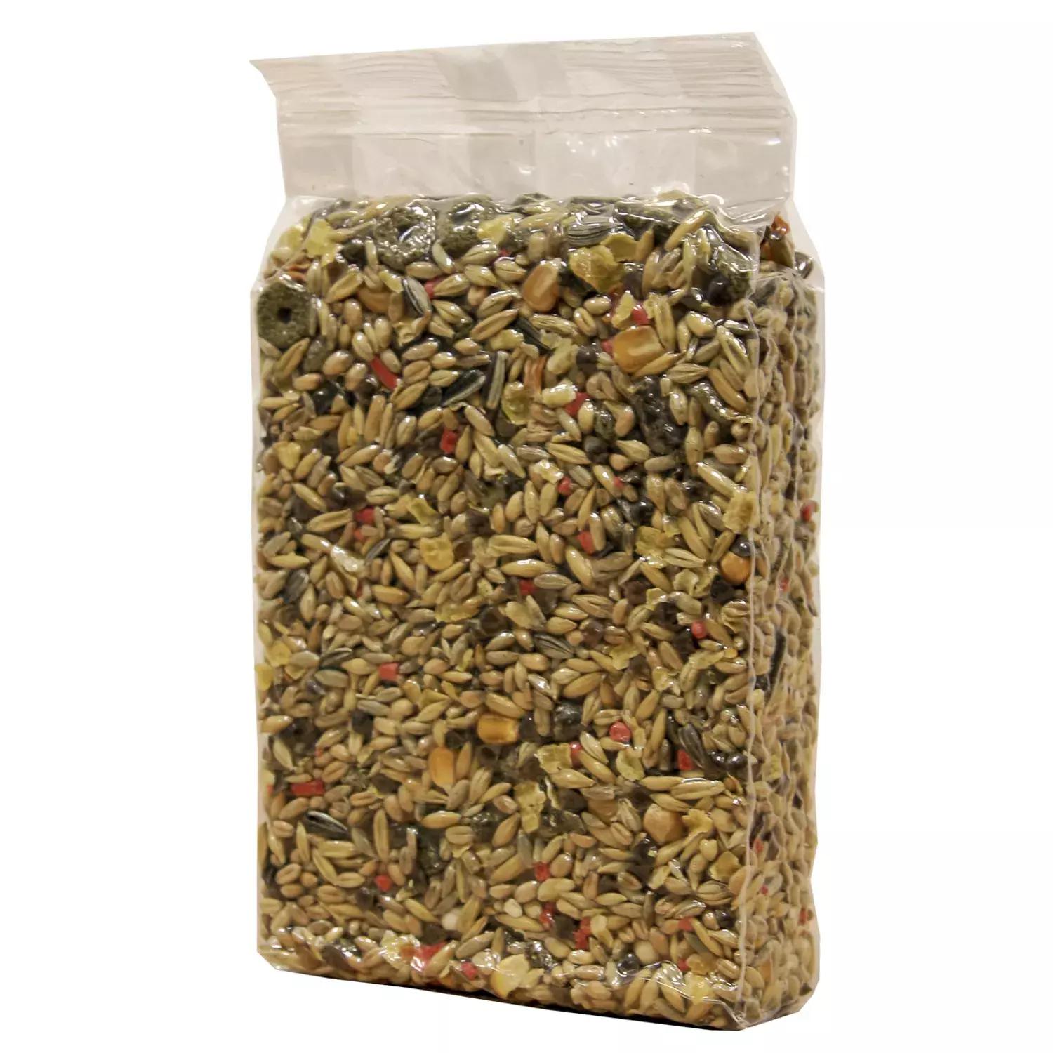 Состав: экструдированная люцерна, зерна и зерновые продукты, красные гранулы (пекарные продукты, продукты растительного происхождения, мед 10%, минералы, масла и жиры, фруктовый ароматизатор, красители и консерванты, одобренные EC, инулин, МОС, ФОС, омега 6, бета глюкан, омега3, экстракт юкки Шидигера) 4,4%, кольца (зерна и зерновые продукты, экструдированная люцерна, фураж и отруби и производные продукты, экстракт растительного белка, минералы и производные продукты) 2,2%, горох, семена маслосодержащих фруктов и производные, арахис, сушеная морковь.