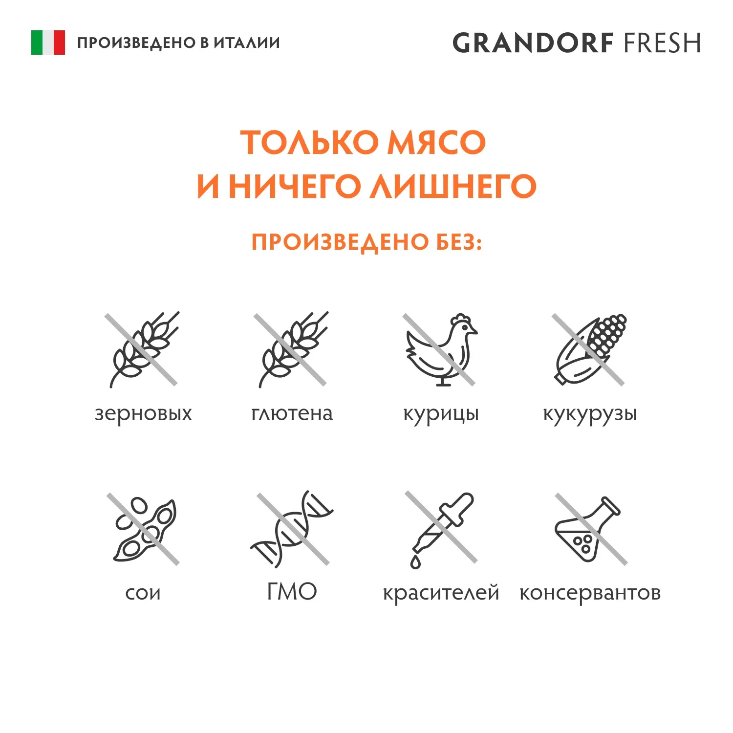 Все влажные корма GRANDORF FRESH основаны на мясе и содержат только высококачественные животные белки. Животный белок очень ценен и содержит все незаменимые аминокислоты для вашего питомца и полностью удовлетворит его биологические потребности в мясном питании.