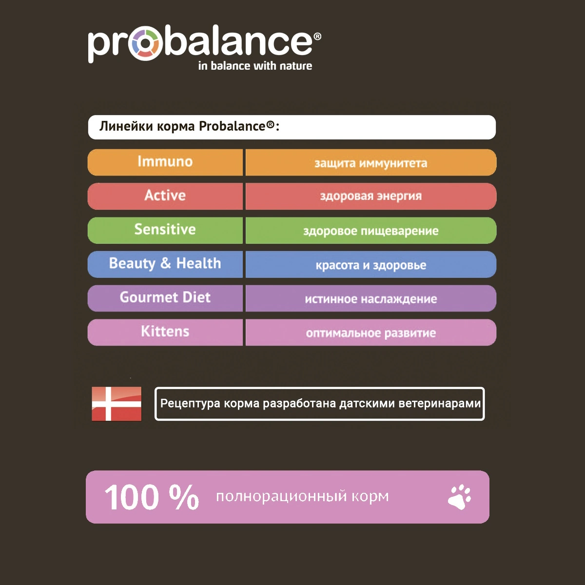 Корма ProBalance (Пробаланс) – это баланс вкуса и пользы. Корма ProBalance не содержат ГМО, красителей и консервантов, содержат таурин – незаменимую аминокислоту для организма кошек. Специально подобранное сырье и строгие требования к производству обеспечивают высокое качество продукта.